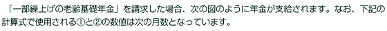 4)「一部繰上の老齢基礎年金」の支給額は次の式で計算されます。 |