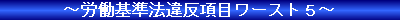 〔厚生労働省労働基準局‐統計資料〕による平成14年度の監督指導実施状況によれば、労働時間と割増賃金項目が圧倒的多数を占めています。(具体的には以下の通りです) |